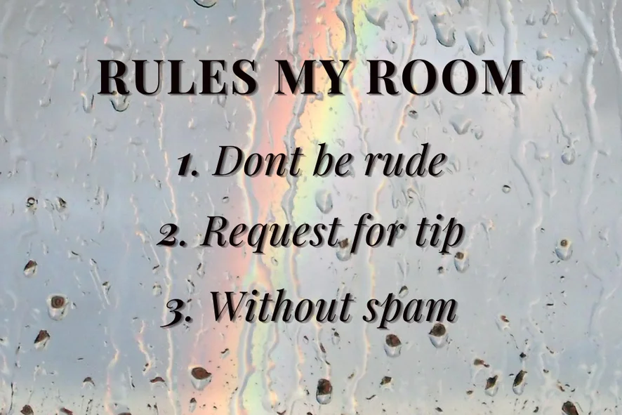 1. Say hello!- when you came to my room 2. Be polite to me, I don't like rudeness 3. Don't ask me how much it costs, everything for free chat is on the tip menu 4. If you like me, use tip menu to do compliment 5. Im non nude model in free chat so do only thigs what u see on tip menu and goal 6. if you don't understand me and don't follow the rules( you leave and we don't communicate anymore) 7. Im love sex and open for too many fetishes like anal, squirt ,oil,wax,feet(it my top) but this only for pvt or exlisive pvt show 8. Pm-personal messages 5k, even if you're an ultimates user. 5tk is just respect 9. You get what you give. So if u be nice im be nice too 10. If for u just hard just write "hello", dont be suprised if u message "show ass/pussy/tits" be ignored. Btw not wait im answer on it